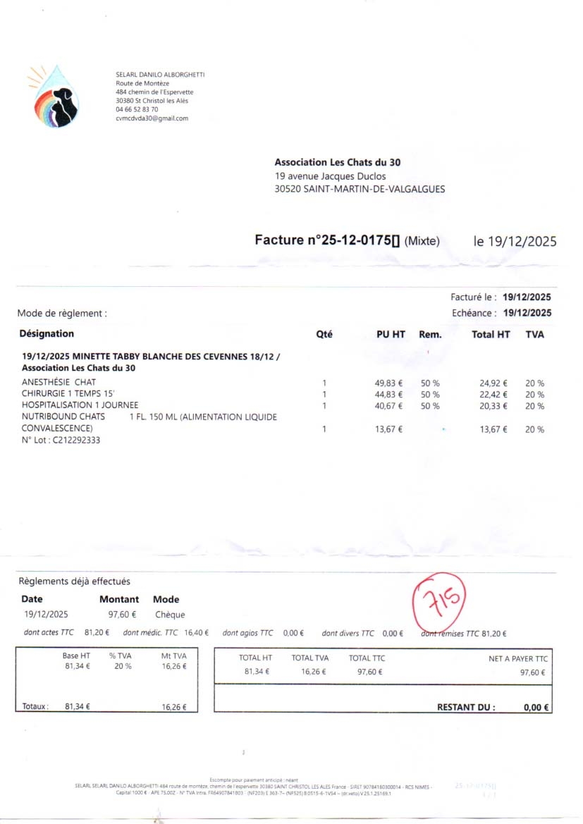 vétérinaire en décembren 731.40 euros