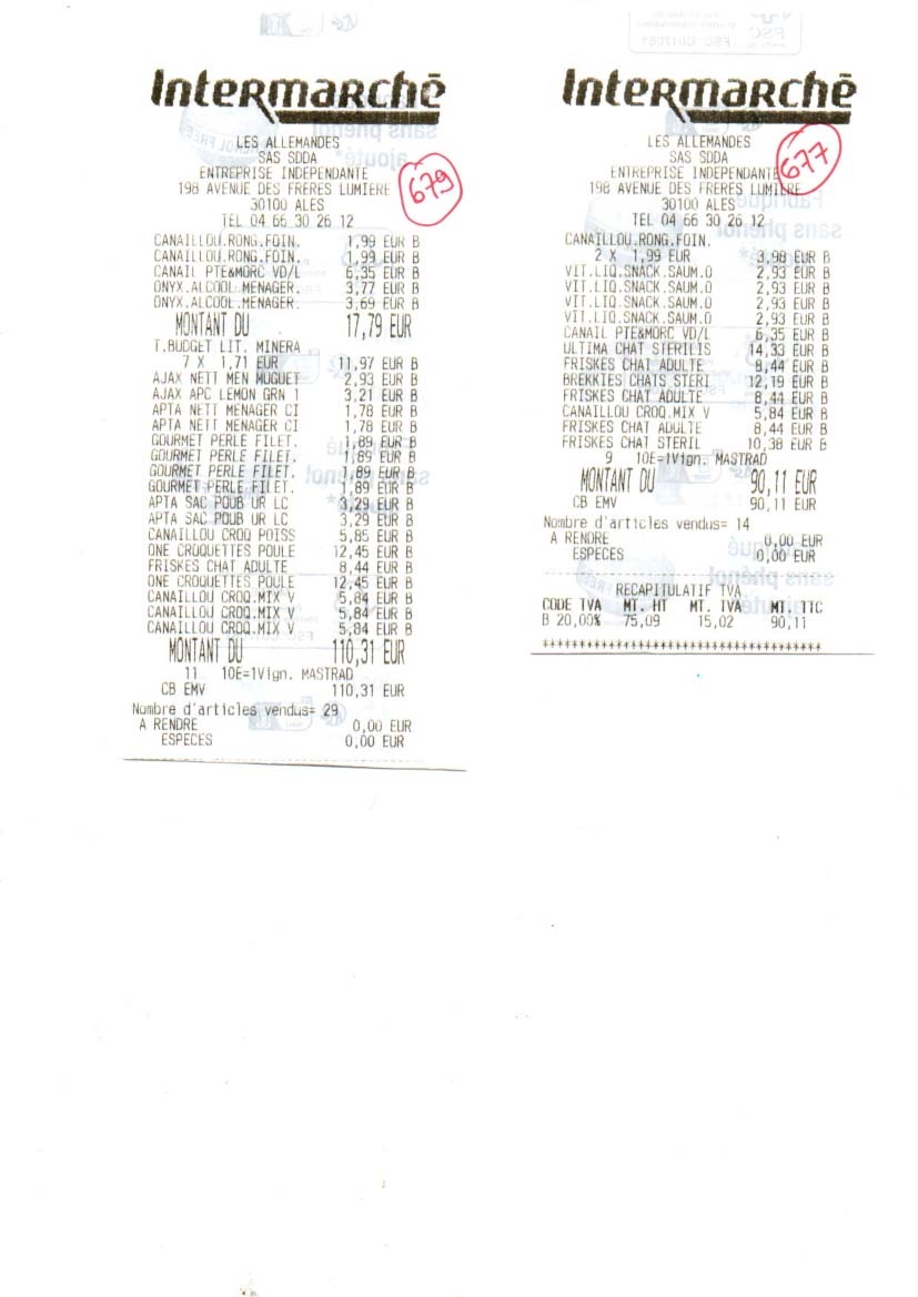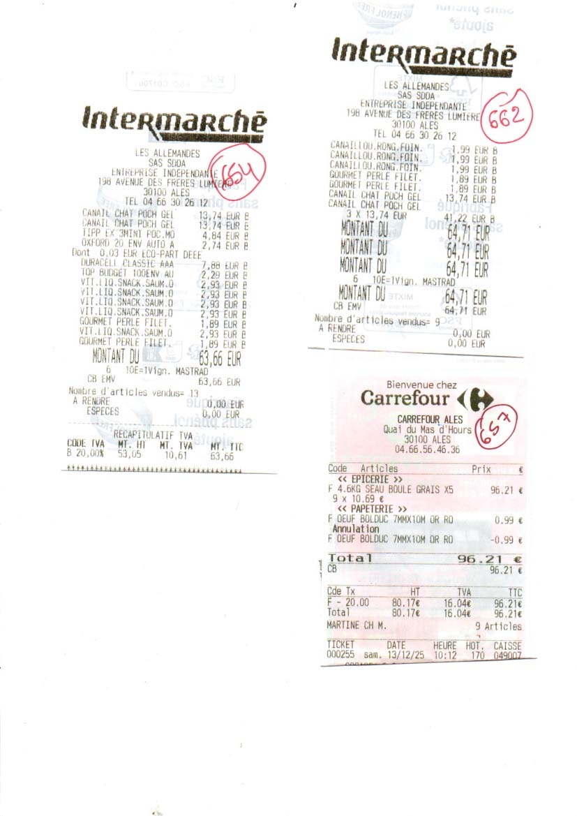 Alimentation décembre 621.54 euros