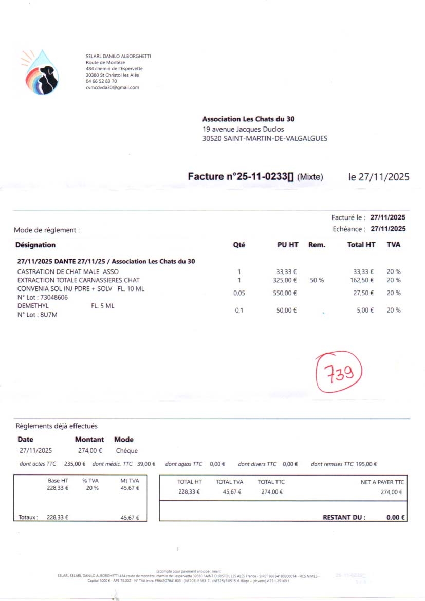 vétérinaire en décembren 731.40 euros