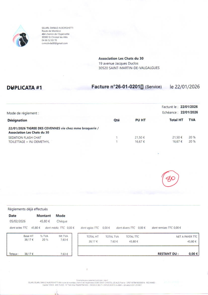 Vétérinaire en février 463.98 euros