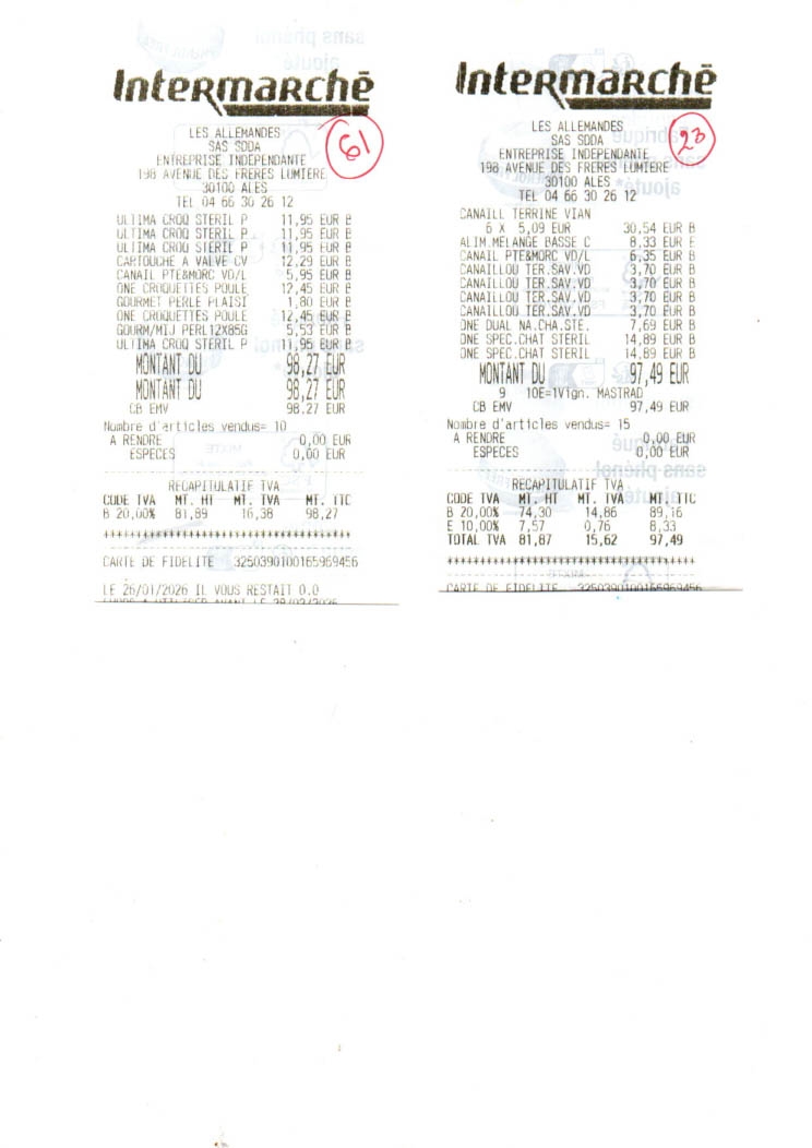 Alimentation janvier 2026 -1949.61 euros